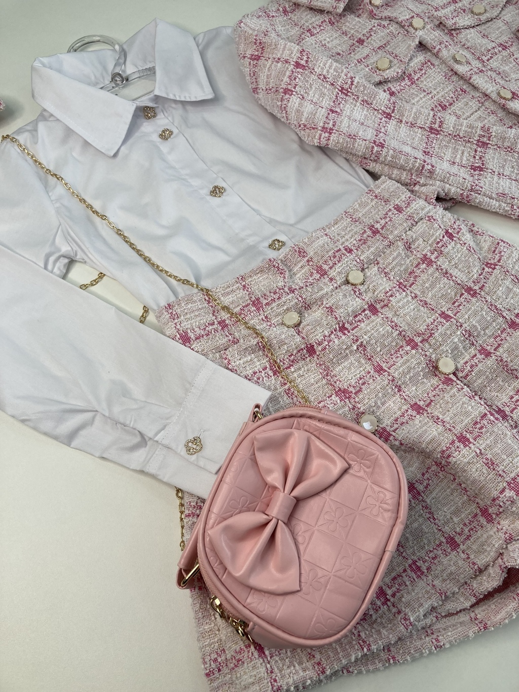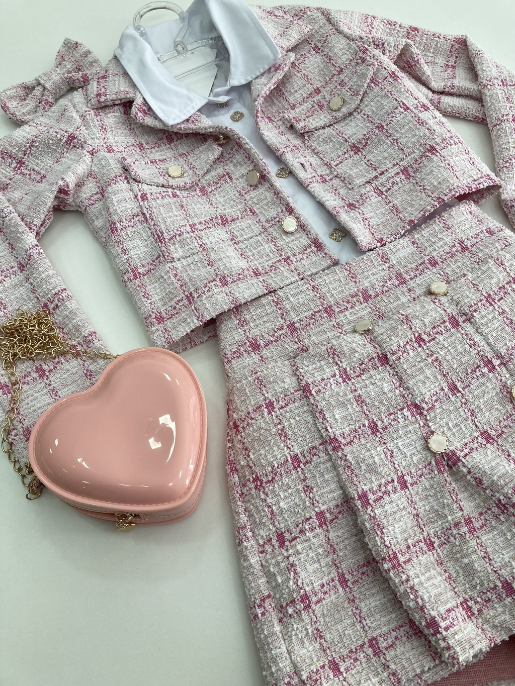 Este Conjunto Em Tweed não é apenas uma peça de vestuário, mas uma verdadeira afirmação de estilo e conforto para as crianças. Uma adição essencial ao guarda-roupa infantil, unindo funcionalidade e elegância em um só produto.