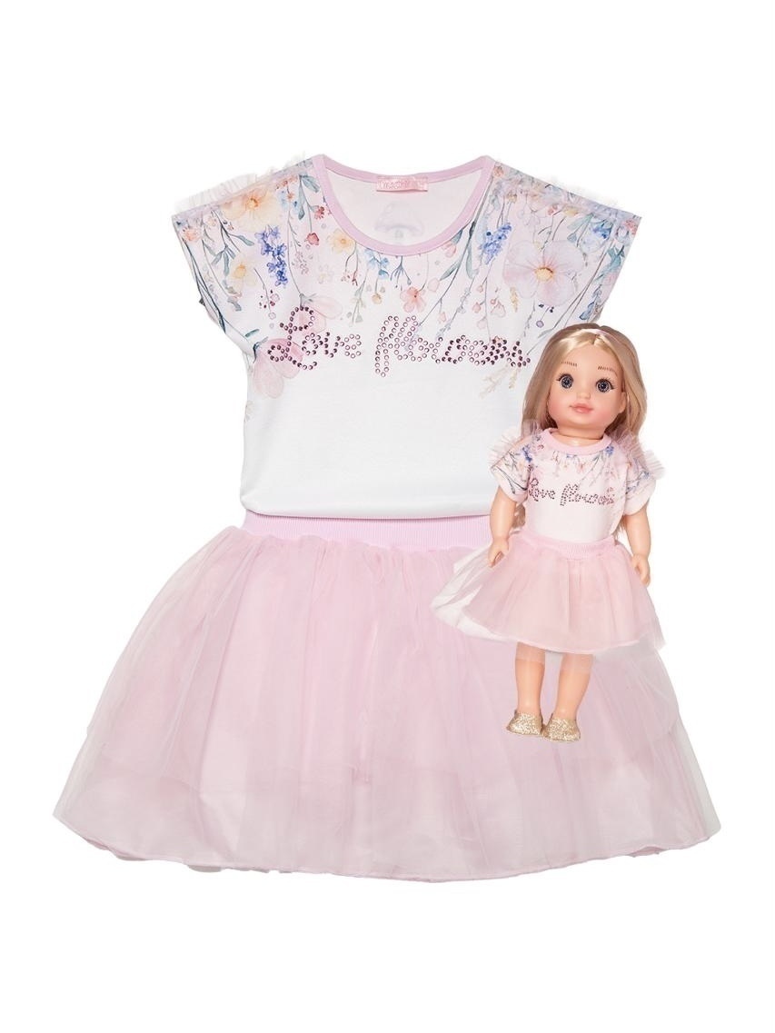 Garanta já o Conjunto Love Flower Com Tutu Marthiê e proporcione momentos de pura magia e delicadeza para sua pequena e sua melhor amiga de brincadeiras!
